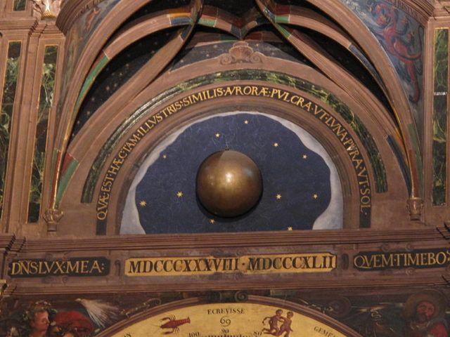 When this clock stopped working in the 16th century, the entire structure was dismantled and the second clock was mounted on the opposite wall of the south transept. It was designed by the mathematician Christian Herlin and was notable for its complexity as an astronomical device with a rich decoration. It stopped working around 1788 and stood still for fifty years.