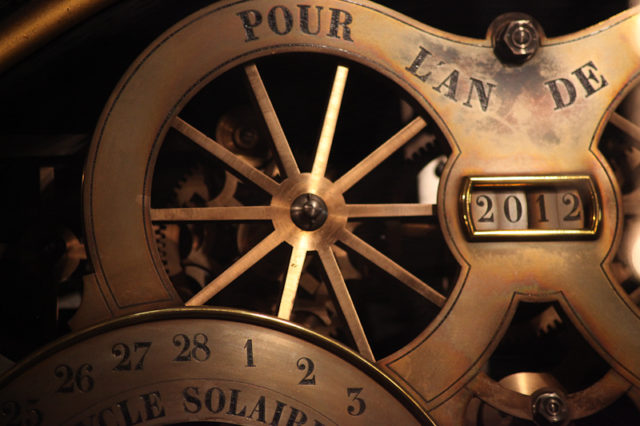 The actual clock was built between 1838 and 1843, by the famous French engineer and inventor, Jean-Baptiste Schwilgué, who produced numerous clocks for church towers. Besides the automata, the current clock shares many of the features of its two predecessors such as a perpetual calendar (including a Gregorian computus designed by Schwilgué), an orrery (planetary dial), a rotating display of the real position of the Sun and the Moon, and solar and lunar eclipses.