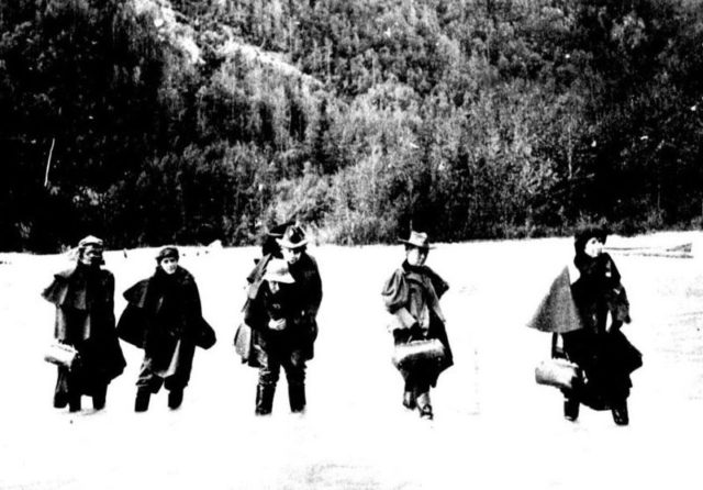 The gold deposits along the Yukon River were known to the Russians but it wasn’t until 1883 that they were discovered by the Americans. By 1886, four people – an American prospector named George Carmack, his Tagish wife Kate Carmack (Shaaw Tláa), her brother Skookum Jim (Keish), and their nephew Dawson Charlie, traveled south of the Klondike River and found gold. And thus started the gold rush.