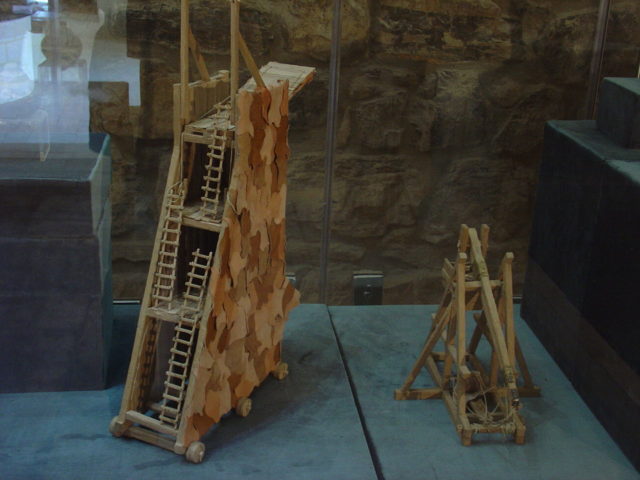 The same year, Saladin besieged the castle because he could not tolerate Raynald’s attacks. At the time of the siege, there was a wedding at the Kerak castle of Humphrey IV and Isabella I of Jerusalem. After some negotiations, Saladin decided not to attack only the tower where the wedding was taking place. The siege was relieved by Baldwin IV of Jerusalem who immediately marched at the site with a relief force.