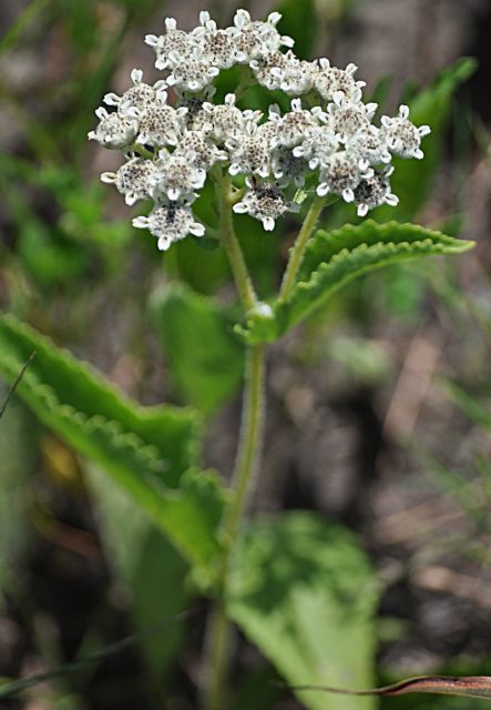 Its spirally arranged leaves are 2 to 8 inches long and can be bipinnately or tripinnately arranged. The inflorescence contains white or pink flowers, 4 to 9 phyllaries and small dry fruits called cypsela.