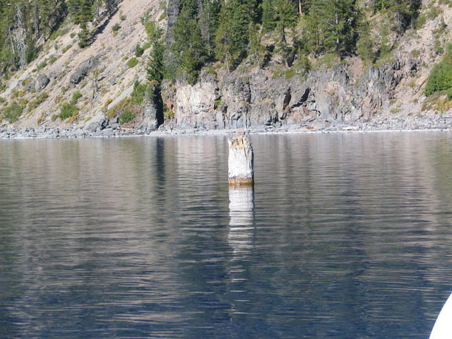 Regarding the tree trunk’s origins, it’s assumed that it may have been a remnant of a volcano eruption which occurred in 5.680BC. According to other assumptions, the tree is a mute evidence of a rock slide from the crater wall. Apparently, the stump was carried away by the water and has floated in a vertical position for over 120 years.