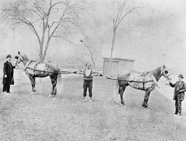 Louis Cyr weighed 18 pounds when he was born in 1863. He became a lumberjack when he was only twelve years old and soon stories of his amazing strength spread around. When he was 17, Louis stood five feet and ten inches tall and weighed 230 pounds. The first display of his strength happened at Boston’s strongest man competition when he lifted a horse from the ground and stunned the audience.