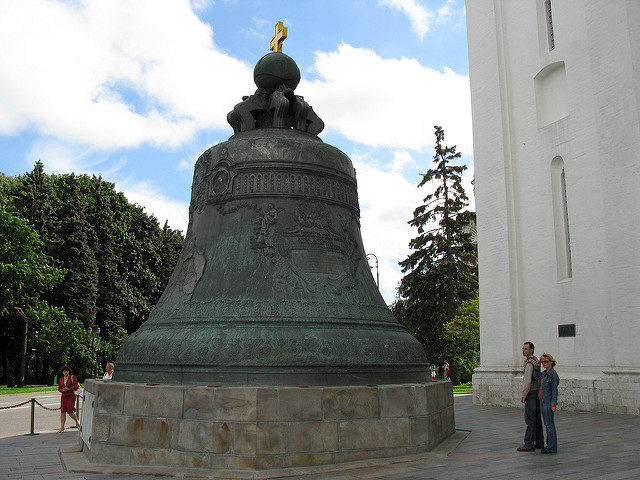 This colossal bell was cast in 1735 by a team of nearly 200 craftsmen under the supervision of Ivan Motorin and his son Mikhail. The empress Anna Ioannova, the niece of Peter the Great, ordered its creation. Today, the bell stands on a large pedestal beside the Ivan the Great Bell Tower in the grounds of the Kremlin in Moscow.