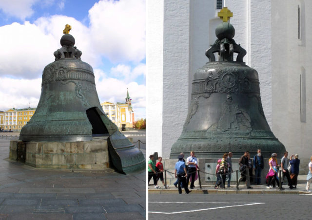 Though the bell has never been rung, it’s believed that it would be heard at a distance of 30–40 miles if it was. Along with the Tsar Cannon, the largest bombard by caliber in the world, the Tsar Bell dominates Ivanovskaya Square in Moscow’s Kremlin