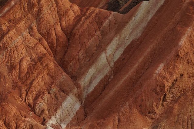 Their surface is primarily dark red, formed by mixing water and iron oxide. The other colors laced throughout the mountains appeared as a result of other oxidized elements, such as magnetite, limonite, goethite, chloride, and iron silicate clays. The appearance of the rocks is usually compared to a layer cake due to the colored sheets.