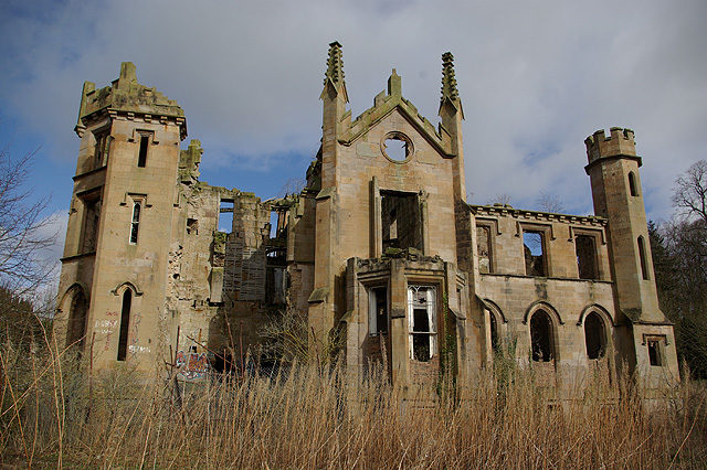 In North Lanarkshire, Scotland, another deserted mansion sits forlornly empty. It was designed by James Gillespie Graham and completed in 1820. The Gothic Revival style home, called Cambusnethan House, or Cambusnethan Priory, replaced a Norman-age tower and manor house which had been destroyed by a fire sometime in 1816.