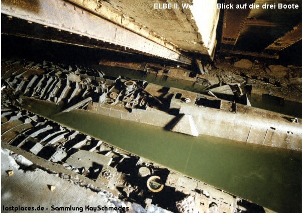 The screw-less training boat broke in two close to the place where it had been built just one year ago at Blohm & Voss. uboat.net . he British came and blew up the bunker and the roof partially collapsed, trapping the boats. Someone made an attempt to scrap them in the ’40s-’50s, but it was too dangerous, so they stayed somewhat intact until the ’90s.