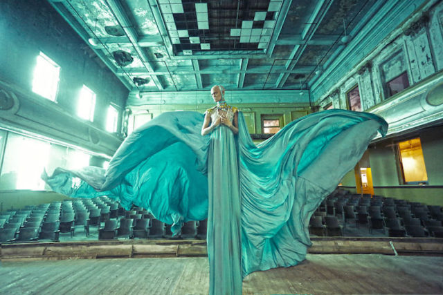 At the beginning of her career, Karen started with band photography, and in 2008, she decided to develop her ideas and photographed people. When she began shooting models, Karen had no precise concept–until the day when she saw a photo of a theater in an abandoned asylum in Connecticut. After a period of practice, Karen even started to make the costumes for the models, added furniture when needed and created full scenes that matched her concept.