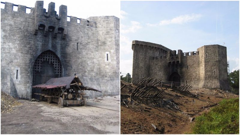 They’ve planted many conifers since then but also implemented fire breaks in between, organizing the woodland in such a way that allows productions to bring their equipment and build large filming sets on location without destroying the forest. Ridley Scott returned to use this location in 2009, for the newest remake of Robin Hood, where he collaborated with Russell Crowe once again. He even got permission to build a castle in the middle of the woods, which stands in for Château de Châlus-Chabrol in France. Pictured above is the castle at the end of filming.