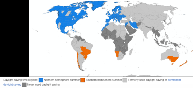 By 1915, Germany was experiencing shortages of coal and other resources. To save light and heat in autumn and spring, the government adopted daylight saving time on April 30, 1916. Great Britain implemented the new settings three weeks later, and other European nations soon followed suit. On March 19, 1918, Congress established the time zones we use today, and the country stayed on daylight saving time for the duration of the war. During the energy crunch of the early 1970s, daylight saving time was brought back, not only to save energy but also to keep children from having to walk to school in the dark. The only states that do not change to daylight saving time are Hawaii and most of Arizona.