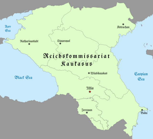 This Reichskommissariat was never completely established and was halted in 1942-43, but it was intended that it would consist of Southern Russia and the Caucasus.