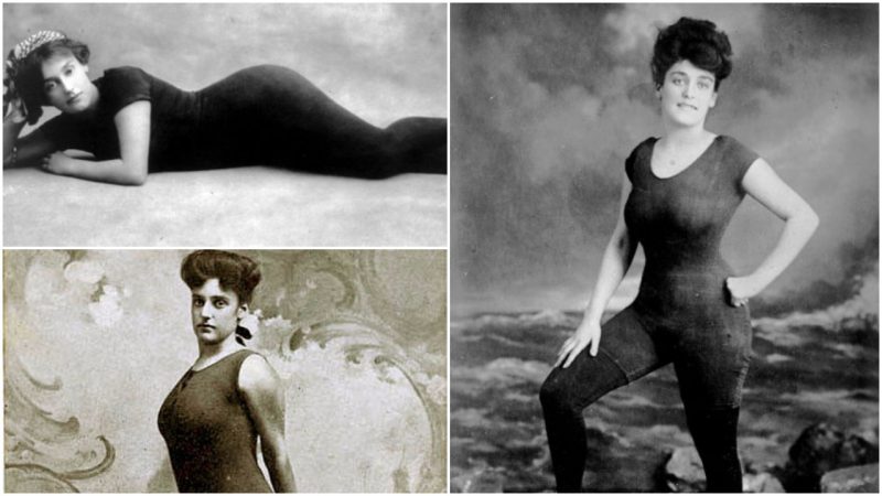 As a contrast, in the early 20th century, Kellerman was determined to revel in her seaside fun despite the prevailing prudish attitudes. In 1905, she invented a revolutionary one-piece swimsuit for women, which she called a “figure suit.” Her idea was to reduce the amount of clothing women had to wear, allowing for freedom of movement in the water.