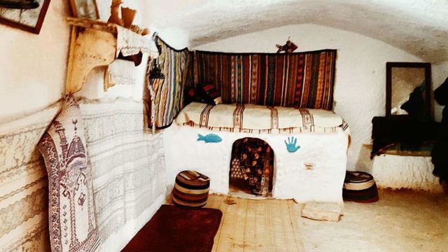 Unfortunately, intensive rains flooded the houses and caused many of them to collapse. Still, after the flooding, only a few of the families moved to new surface dwellings. Most of the people continued their lives in re-built underground homes. Each cave is outfitted with a bed and some authentic Berber furnishings.