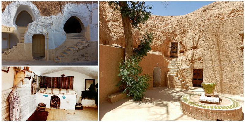 The village was originally designed for defensive purposes and was used as a shelter by the Fellagas, groups of armed militants affiliated with anti-colonial movements in French North Africa. These traditional underground troglodyte structures remained hidden for centuries and no one had any knowledge of their existence until 1967. (A troglodyte is by definition a person who lives in a cave.) Since then, the small town of Matmata has made its way into the hearts of travelers.