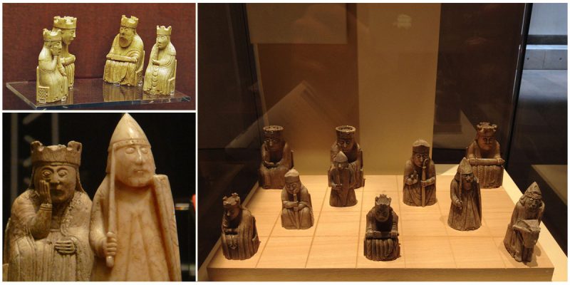 The Lewis Chessmen, among the most important game pieces ever carved, is a valued collection held in the British Museum. The pieces are called Uig because of where they were found: buried under 15 feet of sand at the head of Uig Bay on the Isle of Lewis in Scotland. Discovered in 1831, the hoard contains 93 pieces. Among the 78 chess objects, there were also 14 table men and one belt buckle.