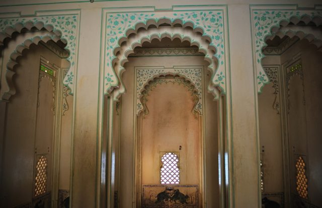The complex incorporates at least 360 temples in its boundaries, including Jain and Hindu ones, as well as a prominent watchtower. The Badal Mahal Palace is certainly one of the most remarkable edifices of all within the complex, standing out with its beautiful green, white, and turquoise colors.