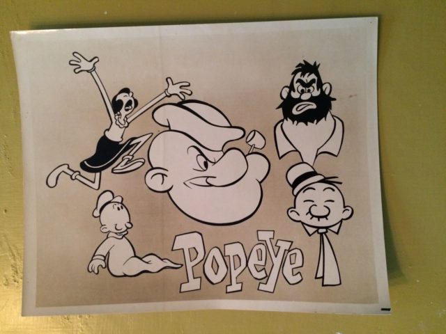 Paramount’s Famous Studios assumed production of the series in 1942. Eventually, Popeye and his crew would be featured in 234 theatrical cartoons. The series began in black and white but by the end of 1943 switched to color. When these same cartoons debuted on television in September 1956, they were a tremendous hit. Popeye and his cohorts, including Olive Oyl, Bluto, Wimpy, and Swee’pea, appeared on all types of merchandise.