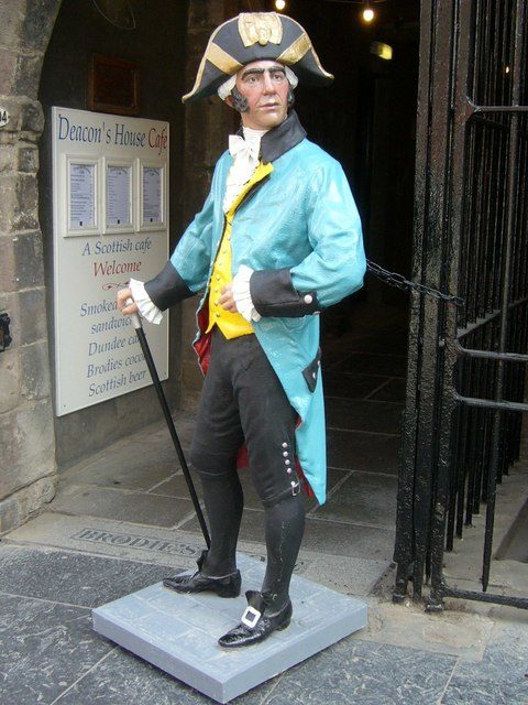 Back in the late 18th century, there was a man, William Brodie, who lived in Edinburgh. He was a fine man, a talented locksmith, and a highly respected member of society. Brodie was quite rich with 10,000 pounds and three houses that he inherited from his father. He also inherited the business, allowing him to sustain the wealth. Brodie was a member of the Town Council and filled the role of Deacon (president) of the Incorporation of Wrights, the head of the Craft of Cabinetmaking. His skills varied—crafting furniture such as cupboards and cabinets, as well as installing and repairing locks. Traveling in the highest social circles, Brodie had the key to almost all of the richest people’s houses. Literally.