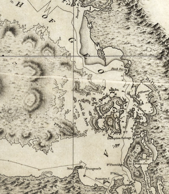 Vancouver’s 1798 map, showing some confusion in the vicinity of southeastern Vancouver Island, the Gulf Islands, and Haro Strait