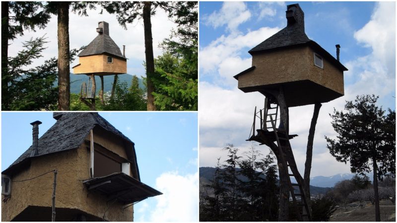 This is what the famous Japanese architect Terunobu Fujimori had in mind when he decided to build a humble tea house on top of two chestnut trees on a plot of family land in Chino, Nagano Prefecture.