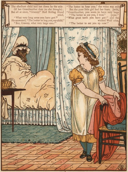 The French folklorists and writer Perrault’s version of the story in the 17th century featured a young girl next door to a village who incredulously shares her grandmother’s address with a wolf. Next, the wolf exploits her naivety by asking her to get into the bed, where he then attacks and eats her.