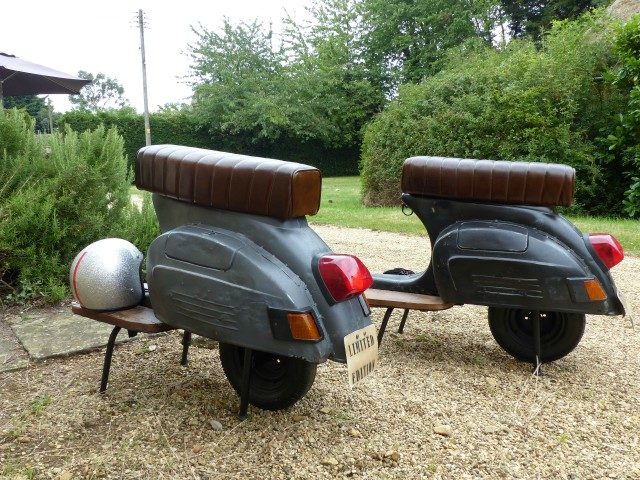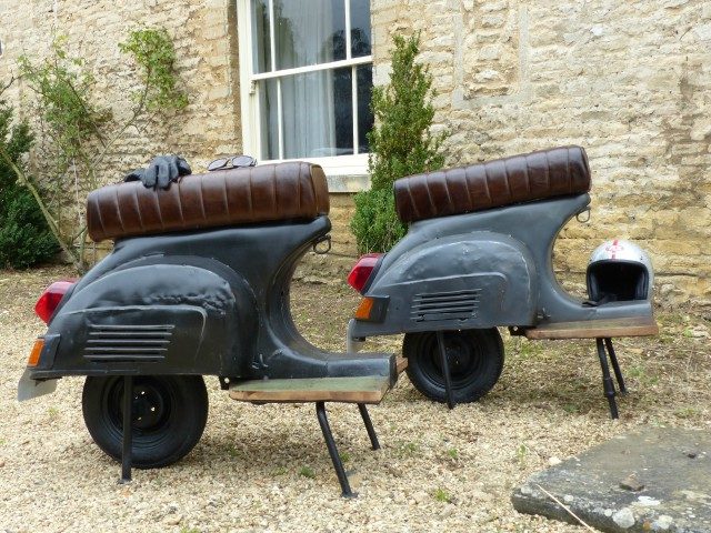 They have poured their hearts and souls into transforming vintage Vespa scooters into unique retro and vintage-looking furniture. By using genuine Vespa scooter back-ends and adding reclaimed wood footboards and a brand new brown seat for extra comfort, they have created these outstanding Vespa Chairs.