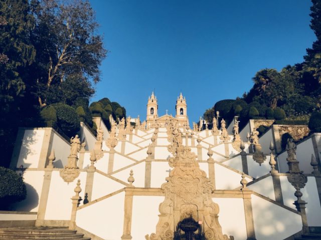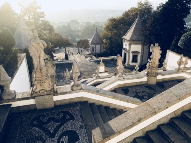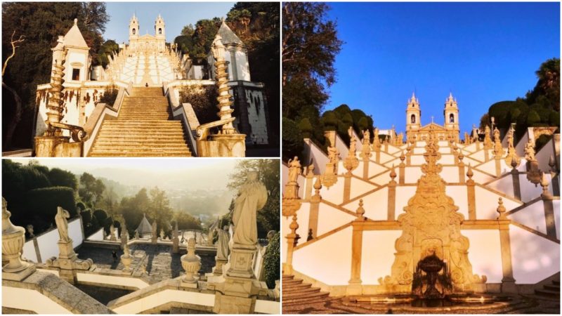 Set on the hillside of the Espinho Mountain, some 381 feet above the ground, Bom Jesus do Monte is dominated by its magnificent pilgrimage stairway that leads up to the impressive church. With around 580 granite steps that zig-zag to the top of the famed stairway and the many statues along the way, visitors see a combination of three architectural styles: Baroque, Rococo, and Neoclassical.