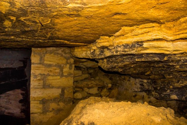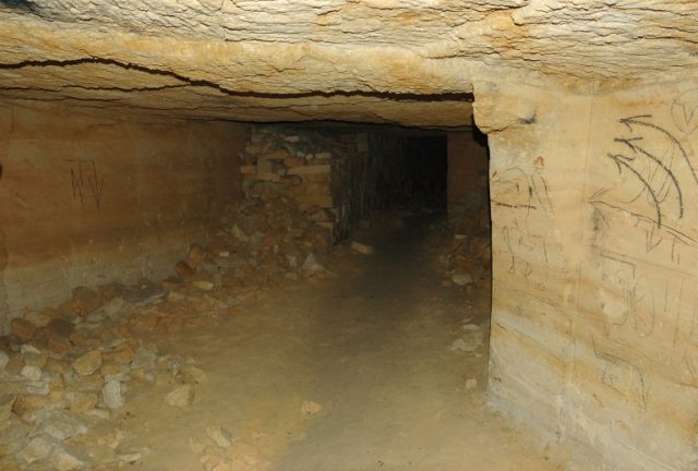 The miners used saws to cut through the limestone, a task that half a century later created a whole complex of tunnels.