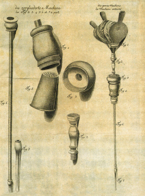 After tobacco was brought to England from the Americas in the early days of colonization, it was immediately recognized as a cure for many things. One of the procedures involving tobacco was borrowed and adapted from an old Native American practice–blowing tobacco smoke into the anus of a patient suffering from colds, drowsiness, or gut pains. For this procedure, European medical practitioners invented the tobacco smoke enema. Besides tobacco smoke, liquid tobacco enemas were also prescribed to patients suffering from a hernia. Tobacco enemas were a thing until the beginning of the 19th century when doctors discovered that nicotine, which is part of tobacco smoke, is a poisonous substance.