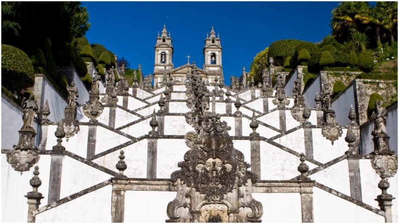 Set on the hillside of the Espinho Mountain, some 381 feet above the ground, Bom Jesus do Monte is dominated by its magnificent pilgrimage stairway that leads up to the impressive church. With around 580 granite steps that zig-zag to the top of the famed stairway and the many statues along the way, visitors see a combination of three architectural styles: Baroque, Rococo, and Neoclassical.