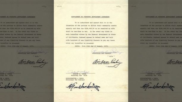 The divorce document, dated August 15 1972, is “a fabulous piece of show business history,” said Henry Aldridge & Son auctioneer Andrew Aldridge.
