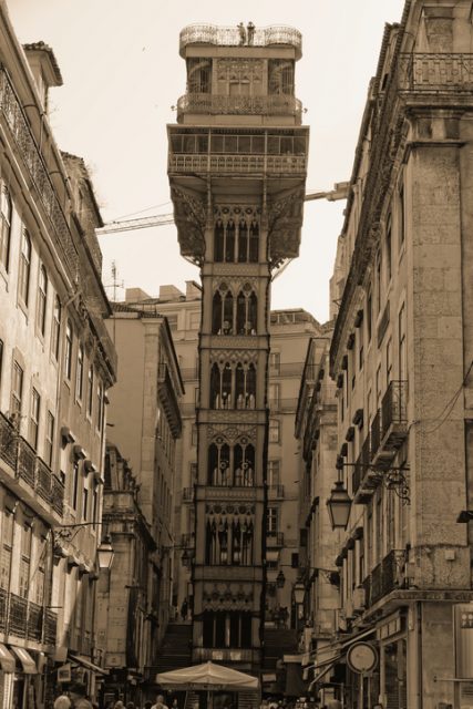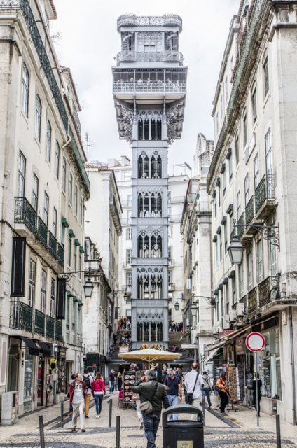 The viewpoints, or miradouros in Portuguese, can be found in lots of places around Lisbon, however, there is one popular tourist hotspot which takes visitors to a unique belvedere–the ornate elevator Santa Justa or Elevador de Santa Justa (Port.)