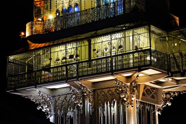Initially, the elevator was powered by steam, but since 1907 it has been using electricity with a safer and cleaner motor which still powers the lift. When visitors reach the top, they step on the platform which can be reached by a spiral case, and relax with a coffee in the cafe while drifting away into the magnificent view of the Baixa neighborhood, the Rossio square or the castle on the opposite hill. At night, the Santa Justa belvedere becomes a real romantic oasis in the crowded urban Portuguese jungle.