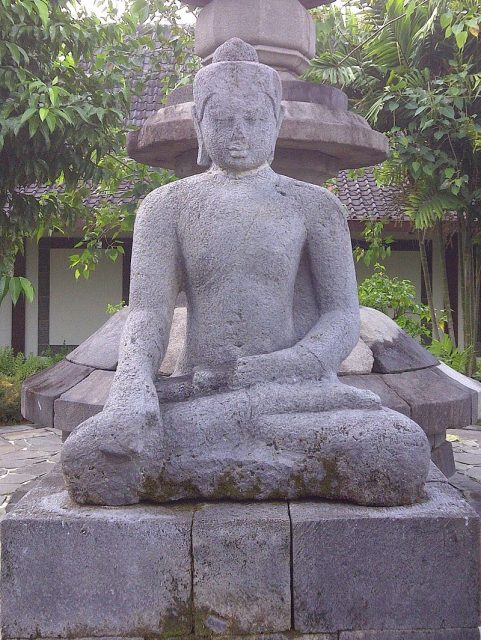 It is believed that the statue originates from the largest stupa of Borobudur, the 9th-century Mahayana Buddhist temple. A stupa, meaning “heap” in Sanskrit, is a mound-like place of meditation on which Buddhist relics are placed.