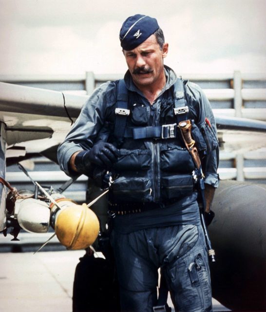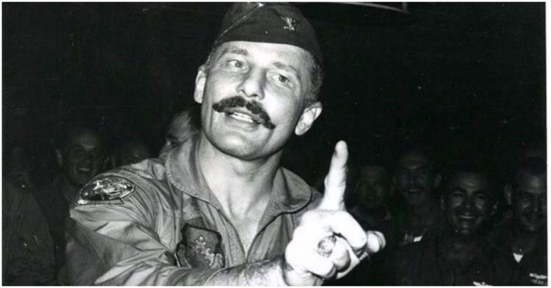 At a time when clean shaven was the only acceptable dress code for American servicemen, it is reported that Olds started to grow his bushy handlebar in March 1967 after his unit’s success in Operation Bolo.