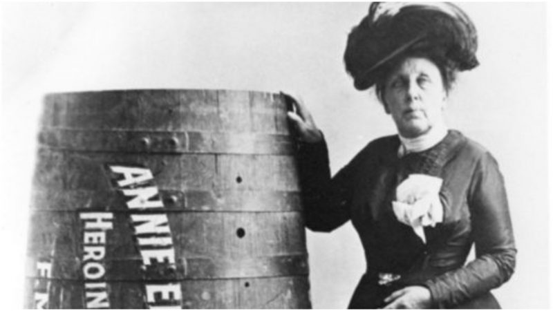 She had a reinforced barrel built, stuffed her lucky pillow inside, and became the first person to go over Niagara Falls in a barrel.