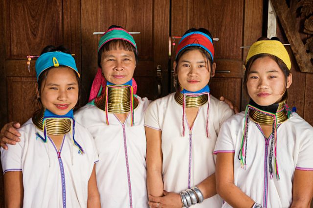 While today neck rings are a rarity, they were extremely popular and expensive fashion items. Some women still wear the rings but mostly for practical, commercial reasons since many tourists come in the area to take a picture with these ‘giraffe women.’