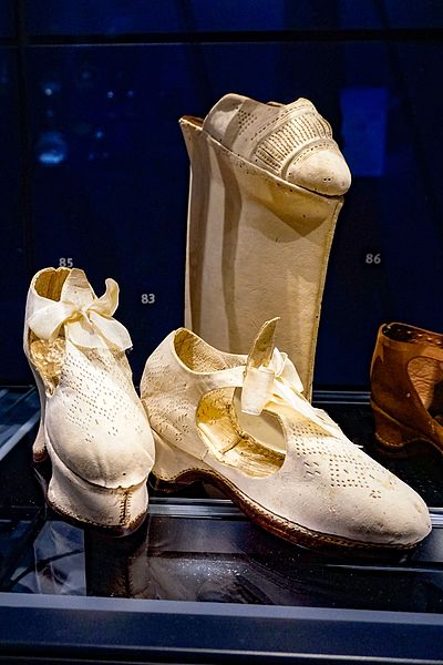 The hemline of the dress defined the footwear. The Spanish chopines were always visible because women wore skirts slightly above their shoes which were made of luxurious materials that aimed to establish the socioeconomic power of the owner. In Italy, on the other hand, wooden chopines were hidden under the skirts of the Venetian women (the textile trade was most powerful in this region). This made the ladies display the wealth and finery of the textile they wore with the shoes considered accessories.