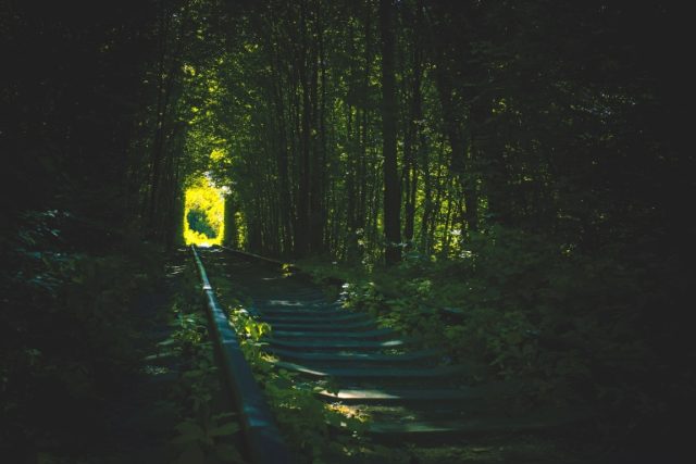Back in the day, many trees were planted in this area to keep the military base concealed from the eyes of the world. Trees were also left to grow carelessly, without any trimming, alongside extensive sections of the rails. Trains using the route eventually helped form a marvelous passage through the trees, matching the size of a train.
