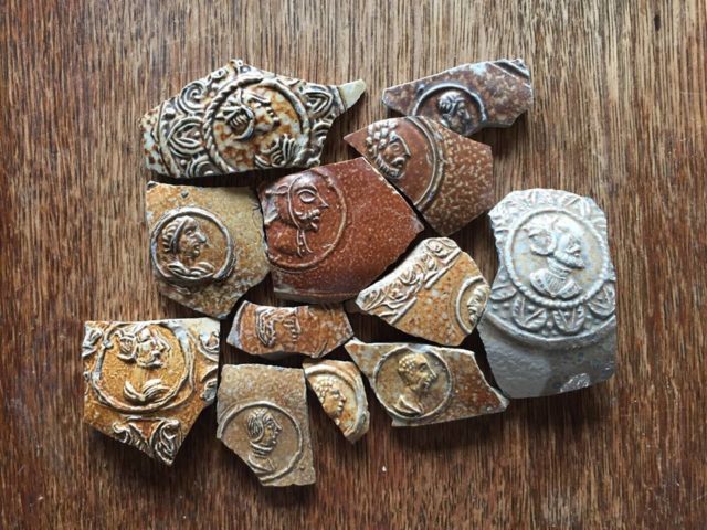 As Maiklem reports, there seems to be a fair amount of broken clay pipes, scattered around like cigarette ends are nowadays. Some of the earliest samples of pipes would date back to the end of the 16th century, when tobacco was first introduced to England.