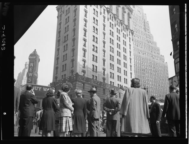 There weren’t any live radio reports from the shores of Normandy and the only way the Americans in New York could get news about D-Day was going to Times Square, where the electronic news sign on the Times building provided the latest news about the invasion.