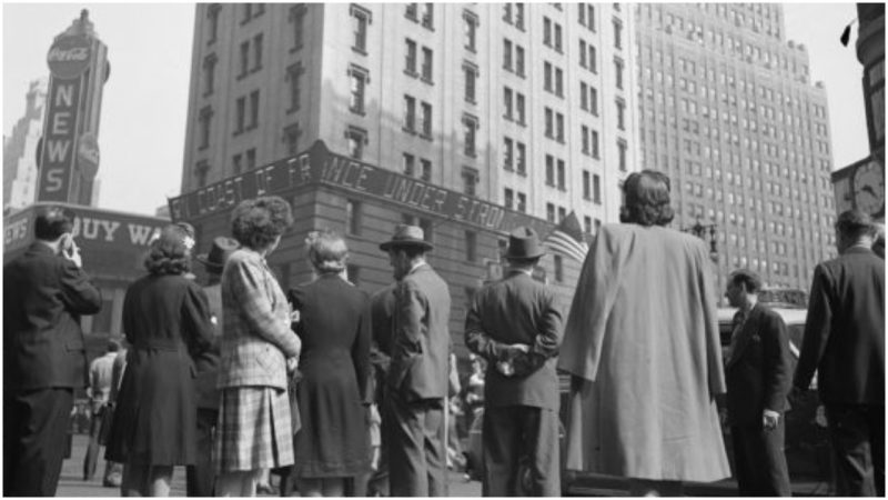 There weren’t any live radio reports from the shores of Normandy and the only way the Americans in New York could get news about D-Day was going to Times Square, where the electronic news sign on the Times building provided the latest news about the invasion.