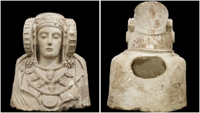 The mysterious artifact, a polychrome bust that depicts the head of a woman, was unearthed by chance in 1897. It was supposedly stumbled upon by a young farm worker who was clearing an area for planting on the L’Alcúdia estate in Elche, part of the Spanish province of Alicante in the country’s southeast.