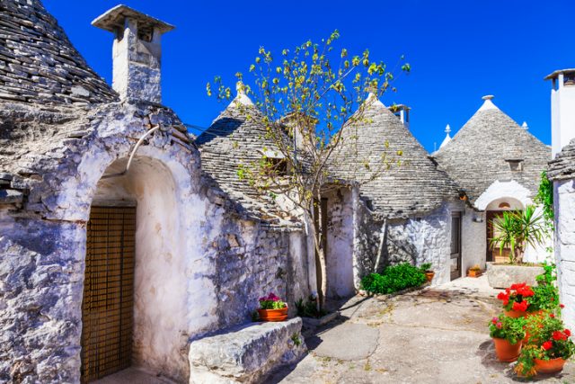Some of the trulli in the Apulia region date back to the 14th century. The then-unpopulated land was given to Robert d’Anjou, Prince of Taranto and the then-King of Naples, as a reward for his service during the Crusades. After that, the land was inhabited with feudal settlements that later became the modern villages of Aja Piccola and Monti.