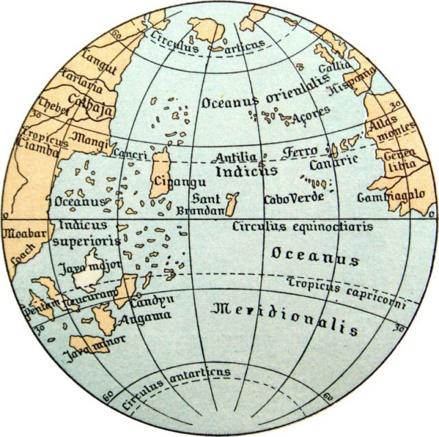 Another interesting observation is the representation of Japan, in those days better-known as Cipangu, thanks to accounts ascribed to Marco Polo. Here, Japan is positioned more to the south of where it actually is. There is also Malaysia, depicted wrongly as a vast peninsula, as well as some notable phantom places such as Saint Brendan’s Island, which people believed existed at some point in the North Atlantic, west of Northern Africa.