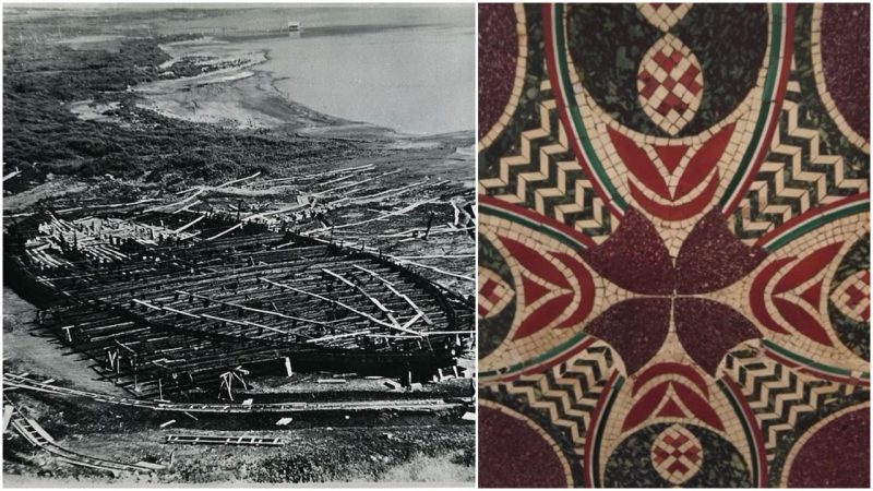 Caligula, feared and detested by almost everyone, was assassinated by his own guards in 41 AD, and the barges were sunk. It wasn’t until the 20th century that they were raised again, after many failed attempts over the centuries. Benito Mussolini ordered the lake drained in order to recover Caligula’s ships, and such a massive effort succeeded: two ships were found in 1932.