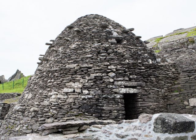 Dedicated to Saint Michael, the monastery consists of six traditional beehive structures called clochan, which are typical of the Irish southwest. Clochan are dry-stone huts used for shelter, or in this case for religious purposes. The origin of these buildings is most probably Celtic, but the design was common in the past, as similar huts can be found in service as tombs all across Europe and even the Middle East and Somalia.
