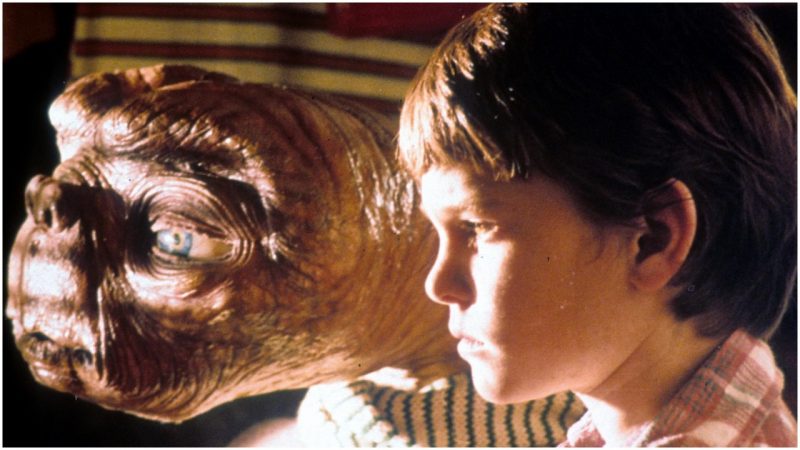 The first person to wear the E.T. puppet costume was an actor Spielberg found through the UCLA Medical Center. Matthew De Meritt, a 12-year-old born without legs, charmed the cast and crew by speeding around the set on a skateboard. E.T.’s heavy radio-controlled head was placed on top of Matthew’s head, he looked out through slit’s in the 15-pound puppet’s chest, and he “walked” on his hands. Matthew was in the costume for the alien’s boozy scenes, where E.T. stumbles around the kitchen and falls on his face.