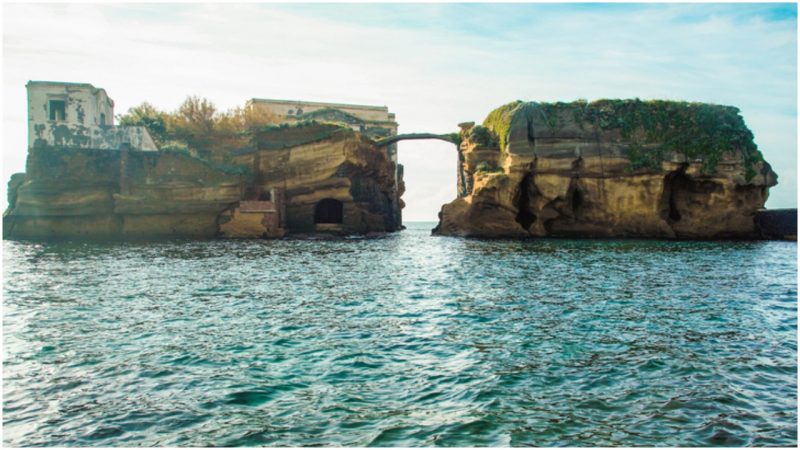 The island today is abandoned, and many locals refuse to be near it in fear of challenging the “Gaiola Malediction,” but in the distant past, it was a vibrant place. The island is located approximately 90 feet off the coastline of the Italian city of Naples in the Gulf of Naples. Actually, it is formed of two small rocky islets connected to each other by a single narrow stone bridge shaped like an arch and just a few feet long, which is now an attraction for the rare visitors. Some scholars think that it was constructed as a bridge, while others believe that it is a surviving part of the roof of a tunnel or artificial cave that was carved into the rock.